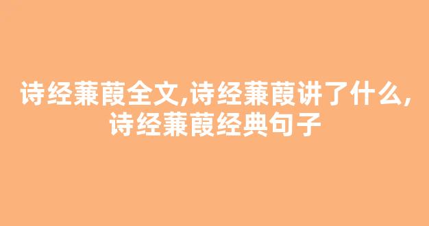 诗经蒹葭全文分析:探讨诗经蒹葭讲了什么,经典句子大解析