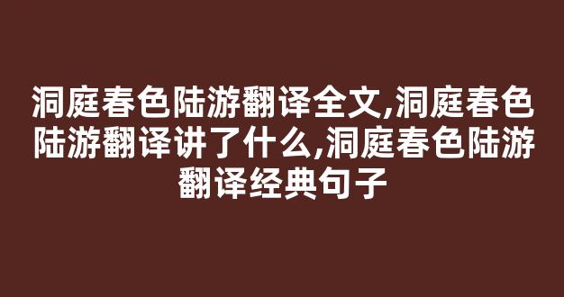 tag:洞庭春色陆游翻译全文,洞庭春色陆游翻译讲了什么,洞庭春色经典句子翻译,陆游洞庭春色解析,洞庭春色诗句意义,洞庭春色深层含义