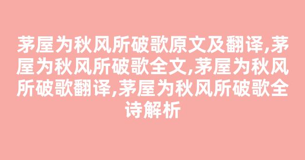 茅屋为秋风所破歌原文及翻译,茅屋为秋风所破歌全文,茅屋为秋风所破歌翻译,茅屋为秋风所破歌全诗解析