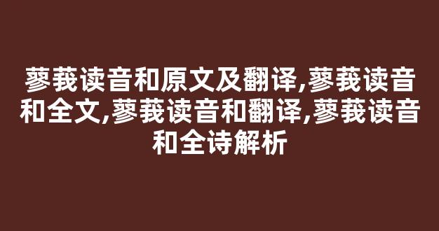 蓼莪读音和原文及翻译,蓼莪读音和全文,蓼莪读音和翻译,蓼莪读音和全诗解析