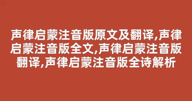 《声律启蒙》是一部影响深远的启蒙读物,它通过音韵、诗词以及注音,帮助孩子们从小学习古诗文。这本书对于孩子的学习非常有帮助,能够激发他们对汉字和韵律的兴趣。在这篇文章中,我们将详细探讨声律启蒙注音版原文及翻译,以及对整本书内容的全诗解析,带你全面了解《声律启蒙》注音版的特点和价值。