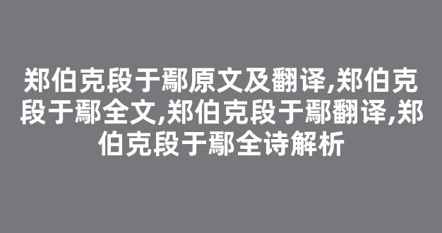郑伯克段于鄢原文及翻译,郑伯克段于鄢全文,郑伯克段于鄢翻译,郑伯克段于鄢全诗解析