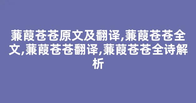 蒹葭苍苍原文及翻译,蒹葭苍苍全文,蒹葭苍苍翻译,蒹葭苍苍全诗解析