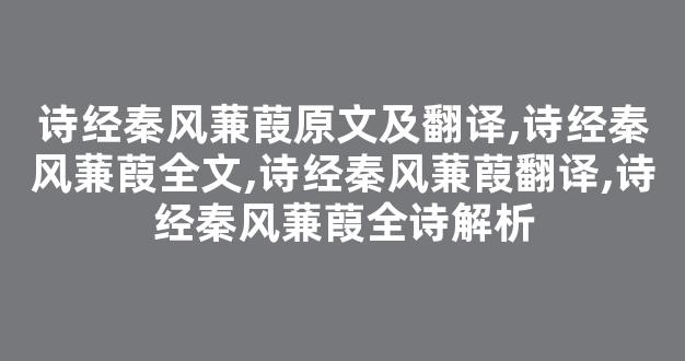 诗经秦风蒹葭原文及翻译,诗经秦风蒹葭全文,诗经秦风蒹葭翻译,诗经秦风蒹葭全诗解析