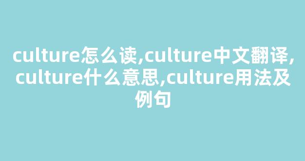 Culture怎么读,culture中文翻译,culture什么意思,culture用法及例句