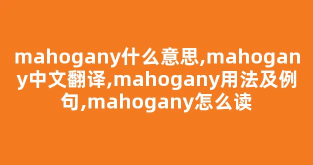 在日常生活中,很多人可能听说过"mahogany"这个词,但并不太了解它的含义、翻译、用法以及读法。今天,我们将详细介绍一下"mahogany"的各种相关知识,帮助大家全面理解这个词,提升英语学习的效率。接下来,我们将从多个角度详细解析"mahogany"的含义,翻译以及实际应用,让大家能够准确使用这个词。