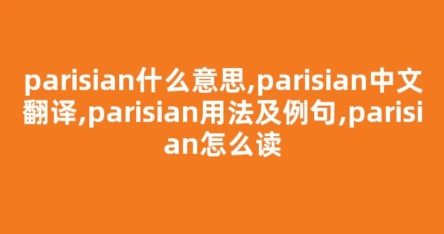 想了解“Parisian”这个词的含义吗?你可能已经听说过这个词,也许它给你带来了关于巴黎的浪漫联想。本文将为你详细介绍“Parisian”的中文翻译、用法和例句,帮你全面理解这个词汇的含义及其在不同语境下的应用。如果你一直在寻找如何正确发音“Parisian”以及它的相关用法,那就一定不要错过这篇文章!